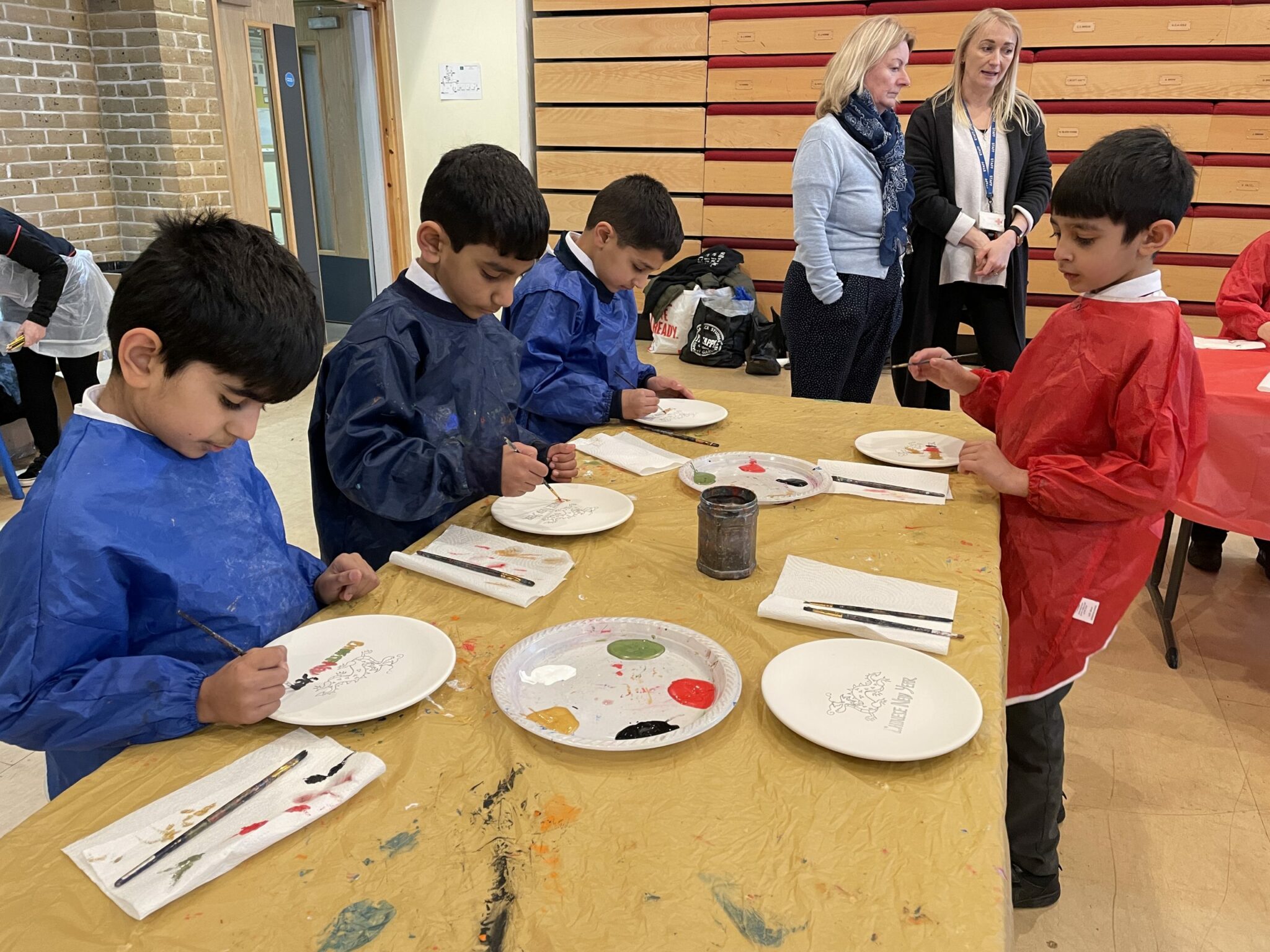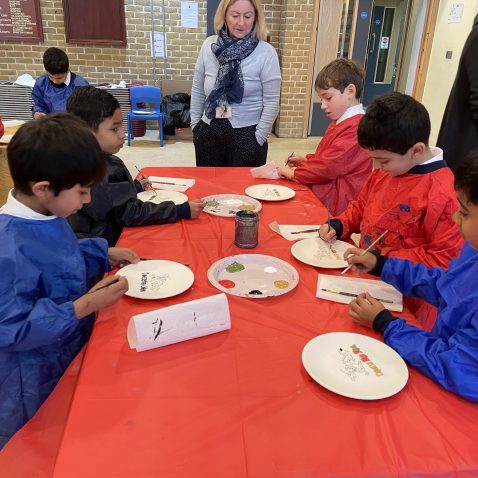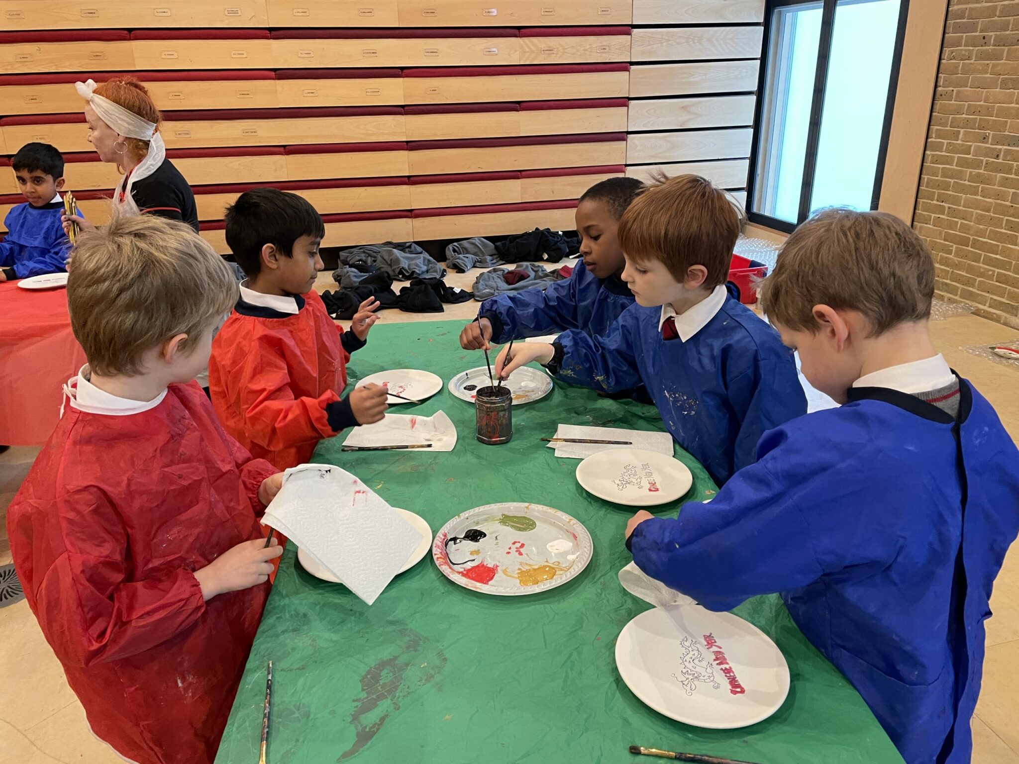 Here, Year 2 and 3 are getting creative by painting a Chinese New Year plate with a dragon on. The boys were very pleased with their finished products.