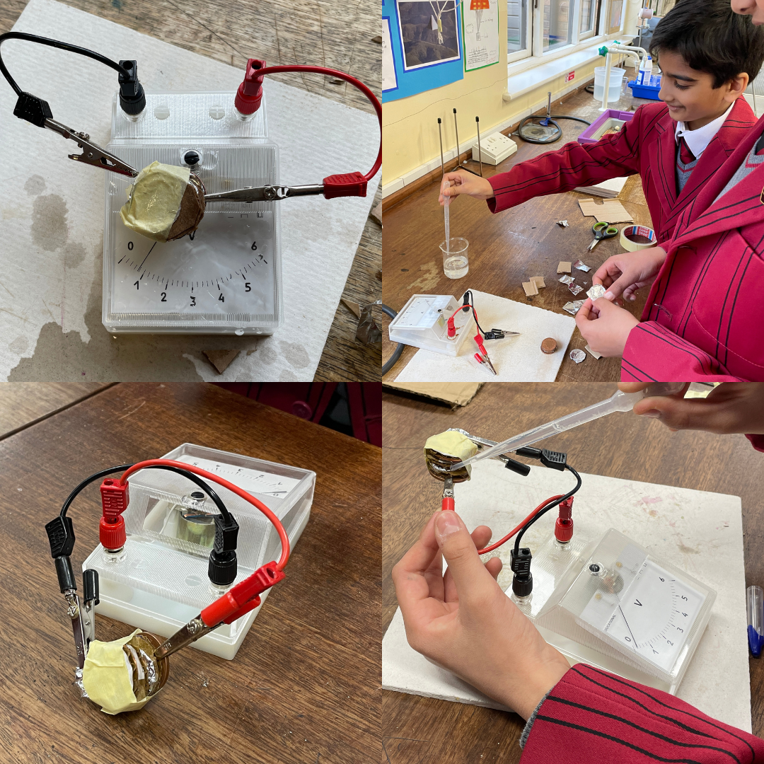 Year 6 have been learning how Alessandro Volta first discovered how to generate a flow of electricity (the battery), and revolutionised our lives. The boys have been making their own batteries, following the Voltaic Pile method, with 0.6 Volts achieved so far. The next step is to devise ways of increasing the voltage sufficiently to light a 1.5 Volt bulb.