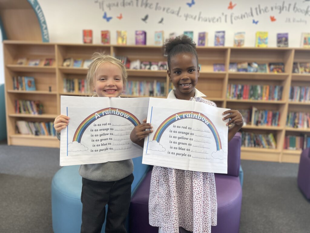 As well as engaging with familiar poems we love like The Charge of the Light Brigade (Year 6 History), the children created new works centred on rainbows and crayons (in French), a rap about subtraction and poems about fire across other year groups.