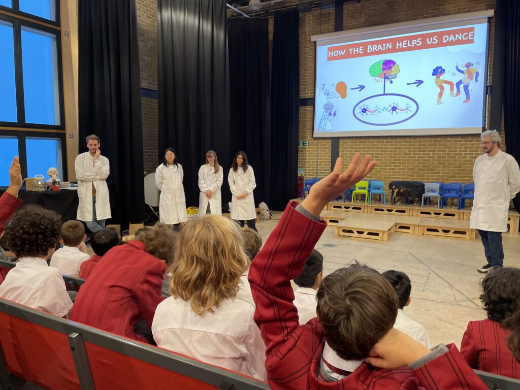 As a musical ice-breaker, pupils started the workshop by dancing! The research team then lead a discussion on how the brain helps us control our bodies, amongst many other vitally important functions.