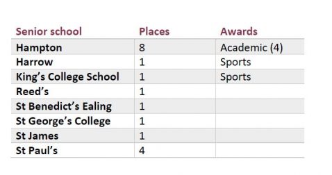 The table below lists the destination schools for our leavers and details of any academic or non-academic scholarship awards.